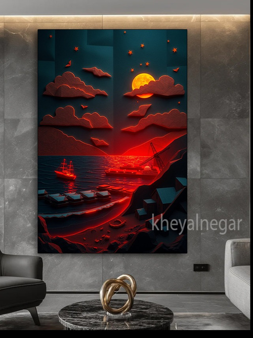 تابلوی "ماه سرخ: سفر به دل خوابها" یک اثر هنری شگفتانگیز است که ترکیبی از زیبایی و خیال را در دل خود دارد. این تابلو میتواند به عنوان یک زیبا و الهامبخش برای دکوراسیون خانه شما عمل کند.