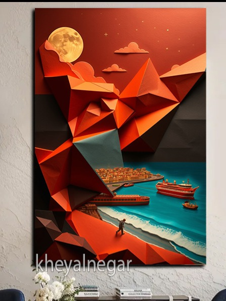 تابلوی 3 بعدی / آهنگ زندگی در کوهستان و دریا🌊🌕