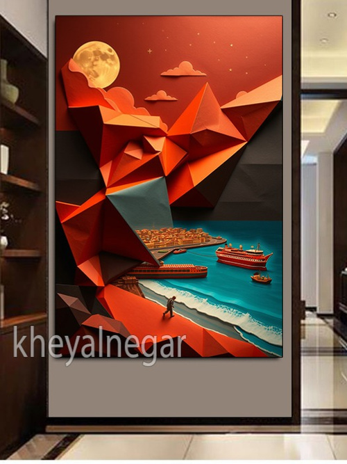 تابلوی 3 بعدی / آهنگ زندگی در کوهستان و دریا 🌊🌕_کد B48