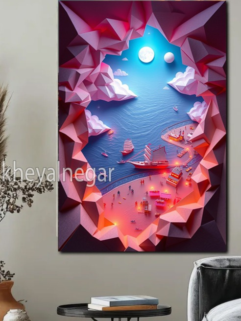 این اثر هنری منحصر به فرد، نمایی سهبعدی و خلاقانه از یک ساحل شگفتانگیز را به تصویر میکشد. رنگهای ملایم با نورپردازی زیبا، فضایی رویایی و آرامشبخش ایجاد کرده است. این اثر نماد تخیل و هنری است که در هر گوشه آن انرژی و زندگی میجوشد. 🎨✨