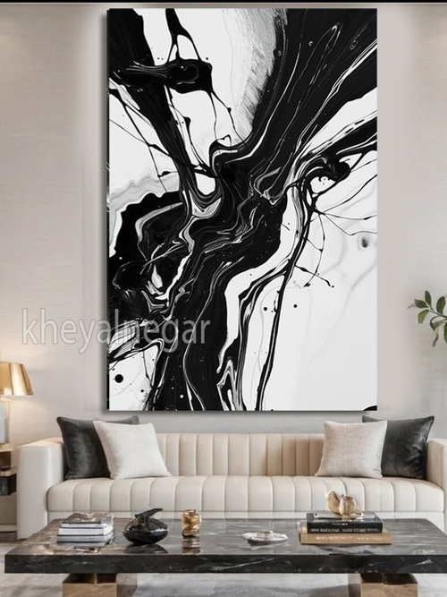 این اثر هنری، نمایی چشمنواز از حرکت و نیروی زندگی را به تصویر میکشد. خطوط سیاه و سفید بهطور دینامیک در هم تنیده شدهاند و داستانی از انرژی و خلاقیت را روایت میکنند. این تابلو شما را دعوت میکند که در دنیای احساسات و تصورات خود غوطهور شوید. 🎨