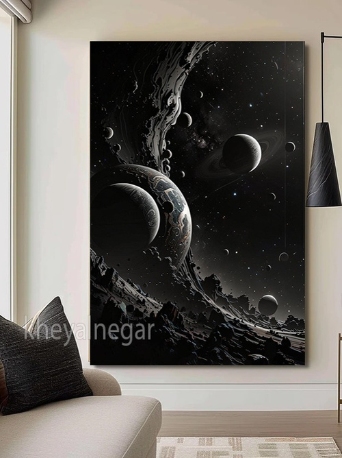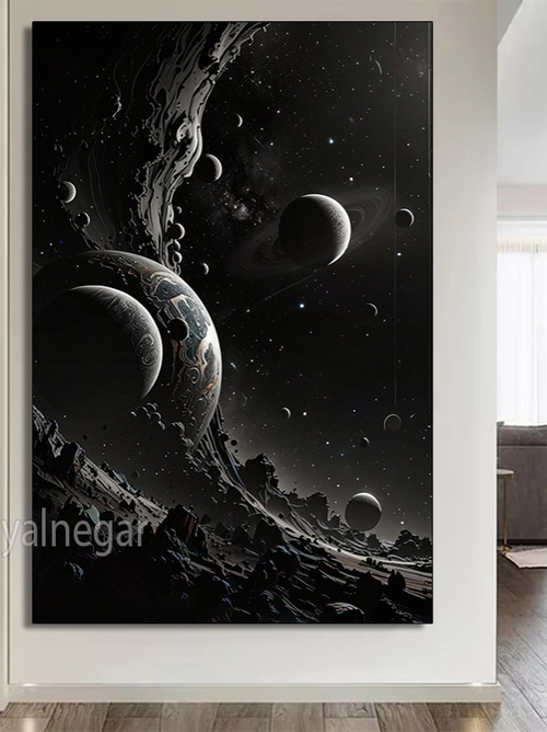 این اثر هنری، نمایی فوقالعاده از کیهان و سیارات را به نمایش میگذارد. حلقههای زیبا و سیارات مختلف که به طور خیرهکنندهای در یکدیگر تنیده شدهاند، حس ترس و شگفتی را در تماشاگر ایجاد میکنند. ✨