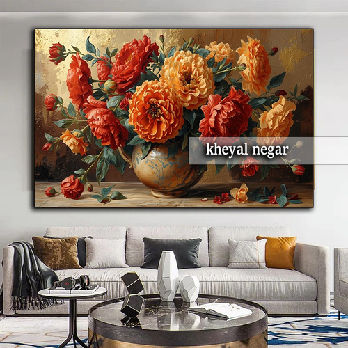 🌹 تابلوی گلهای بهاری در گلدان / شکوه و رنگهای زنده 🌼 کد O27