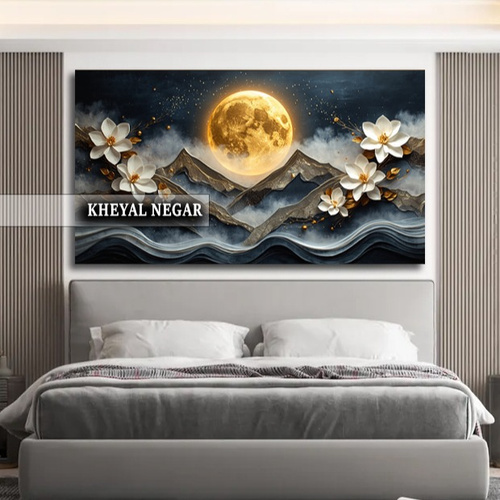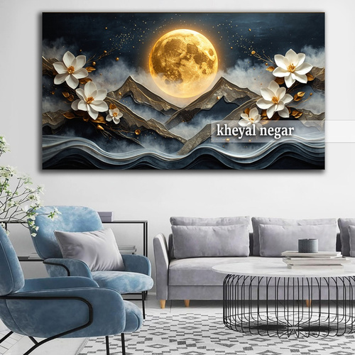 ✨ تابلو هنری لوکس با طراحی خلاقانه ( ماه، دریا، کوه و گل ) - کد L5 ✨