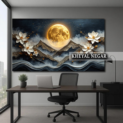 این تابلوی منحصر به فرد شما را به یک دنیای پر از زیبایی و راز دعوت میکند. با تصویرسازی خیرهکنندهی کوهها، ماه کامل و گلهای لطیف، فضایی از آرامش و قدرت طبیعی را به خانه شما میآورد.