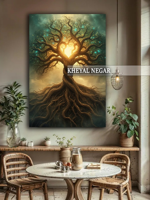 این تابلو دکوراتیو و هنری با طراحی جذاب و شگفتانگیز، شما را به دنیایی از زیبایی و آرامش دعوت میکند. تصویر درخت زندگی با ریشههای عمیق و شاخههای گسترده، نمادی از ارتباط عمیق و هماهنگی با طبیعت است.
