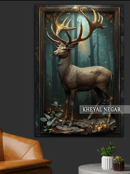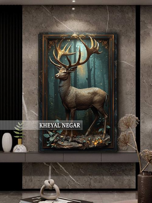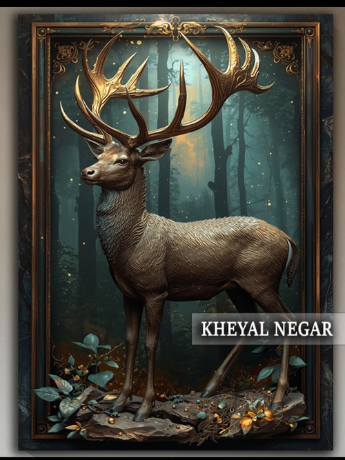 این اثر هنری زیبا، نمایانگر گوزن نر با شاخهایی مجلل است که در فضایی مرموز و طبیعی ایستاده است. نورهای ملایم و جزئیات دقیق در پسزمینه، حس تردید و آرامش را در دل طبیعت منتقل میکند. 🦌🌲