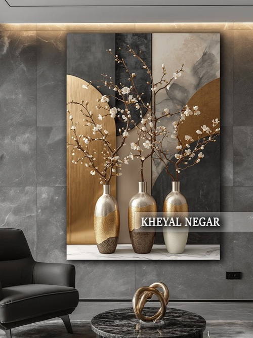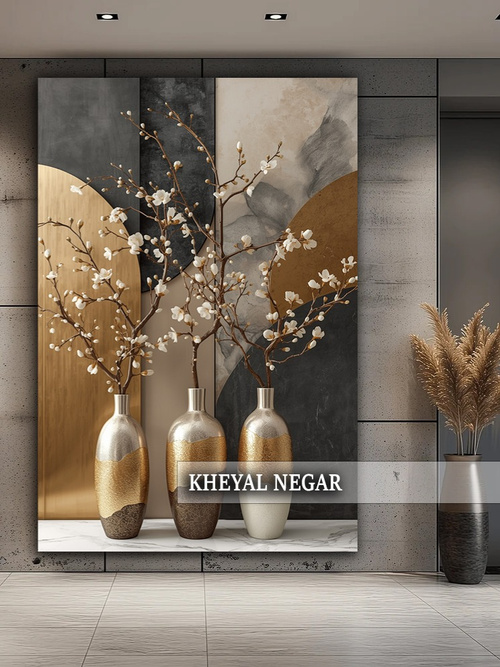 تابلو هنری با گلدانهای مدرن و شاخههای گل _ کد: O52
