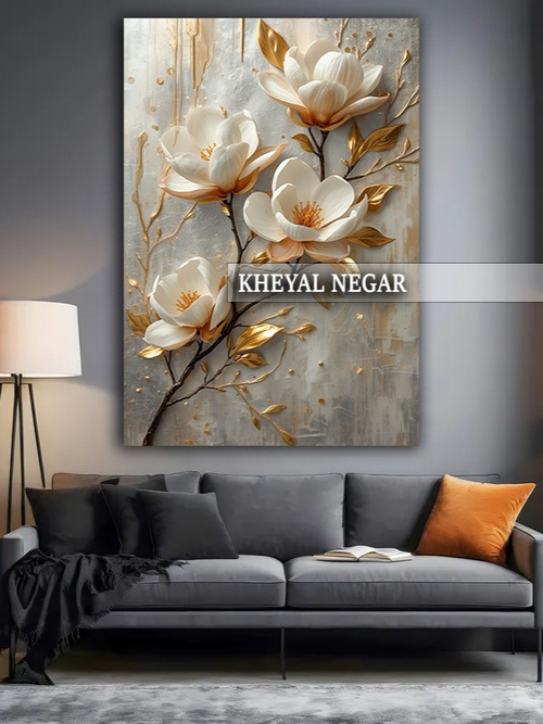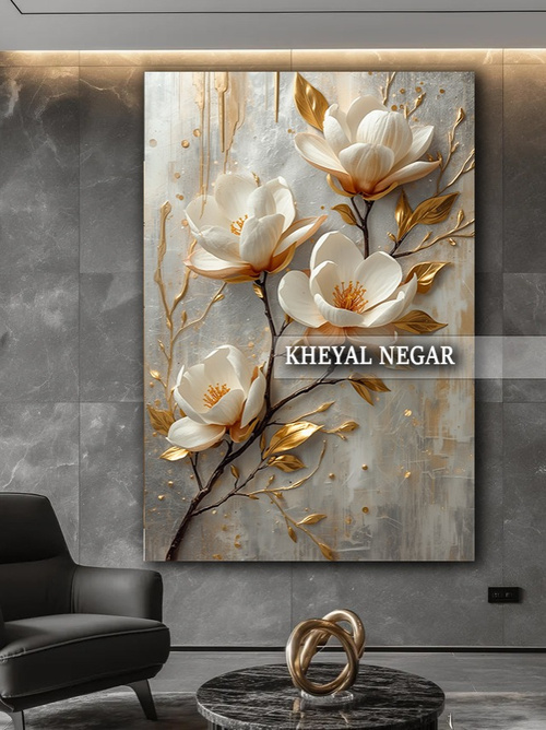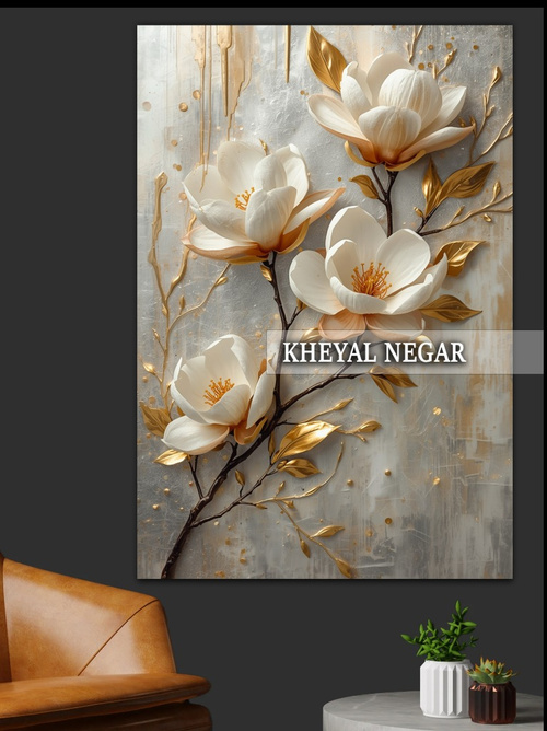 این اثر هنری زیبا، شامل گلهای مگنولیا با طراحی خاص و شگفتانگیز است که با جزئیات طلایی و زمینهای ملایم به تصویر کشیده شدهاند. این تابلو جلوهای از لطافت و زیبایی طبیعی را به فضا منتقل میکند. 🌼✨