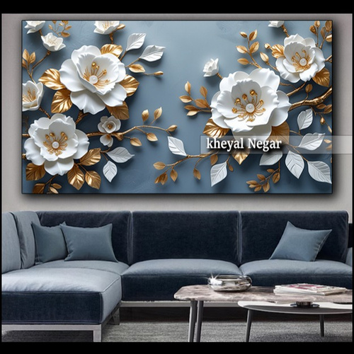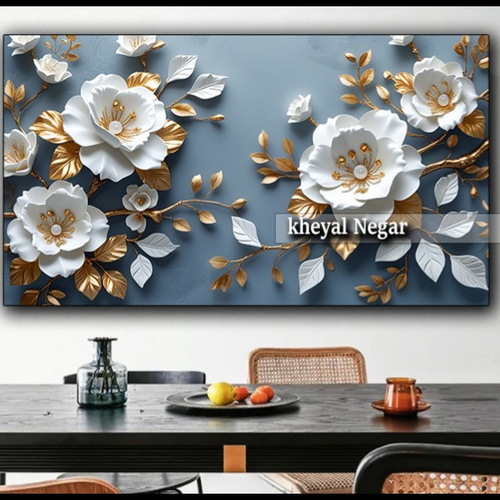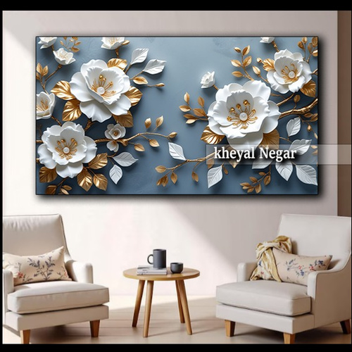 این اثر هنری زیبا، نمایانگر گلهای مگنولیا با رنگهای سفید و جزئیات طلایی بر روی زمینهای آبی است. این تابلو با طراحی خلاقانه و جذابیت خاص خود، احساس لطافت و زیبایی را به فضا میآورد. 🌺✨